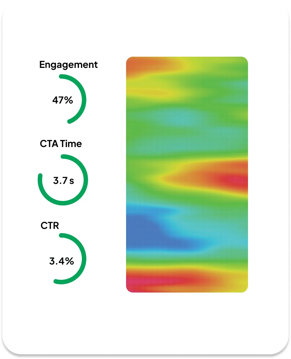 On the Insight page, you can track dozens of metrics of your games such as CTR rate, impressions, win/lose rates, first interaction rates, count of CTA clicks, playtimes, heatmaps etc.